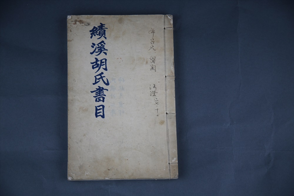 中华民国《绩溪胡氏书目》,藏品总登记号:1998-7,年代:中华民国,质地:纸,尺寸:长26.8cm,宽16.5cm,高0.9cm,保存状态:状态稳定,不需修复