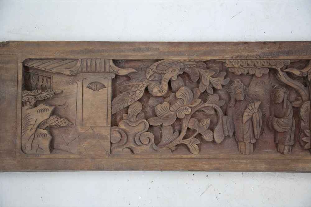 清戏剧故事纹额枋,藏品总登记号:2002-1,年代:清,质地:木,尺寸:长223cm,宽24cm ,保存状态:状态稳定,不需修复