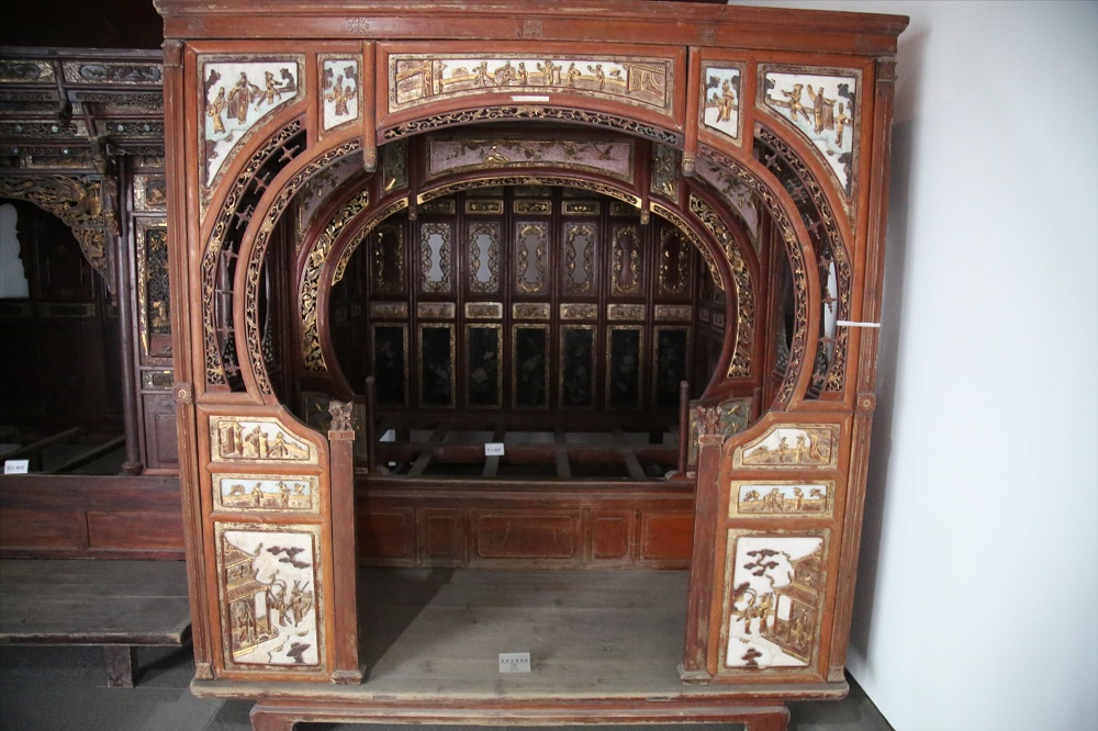 中华民国两进式描金民俗床,藏品总登记号:2003-24,年代:中华民国,质地:木,尺寸:长226cm,宽232cm,高208cm,保存状态:状态稳定,不需修复