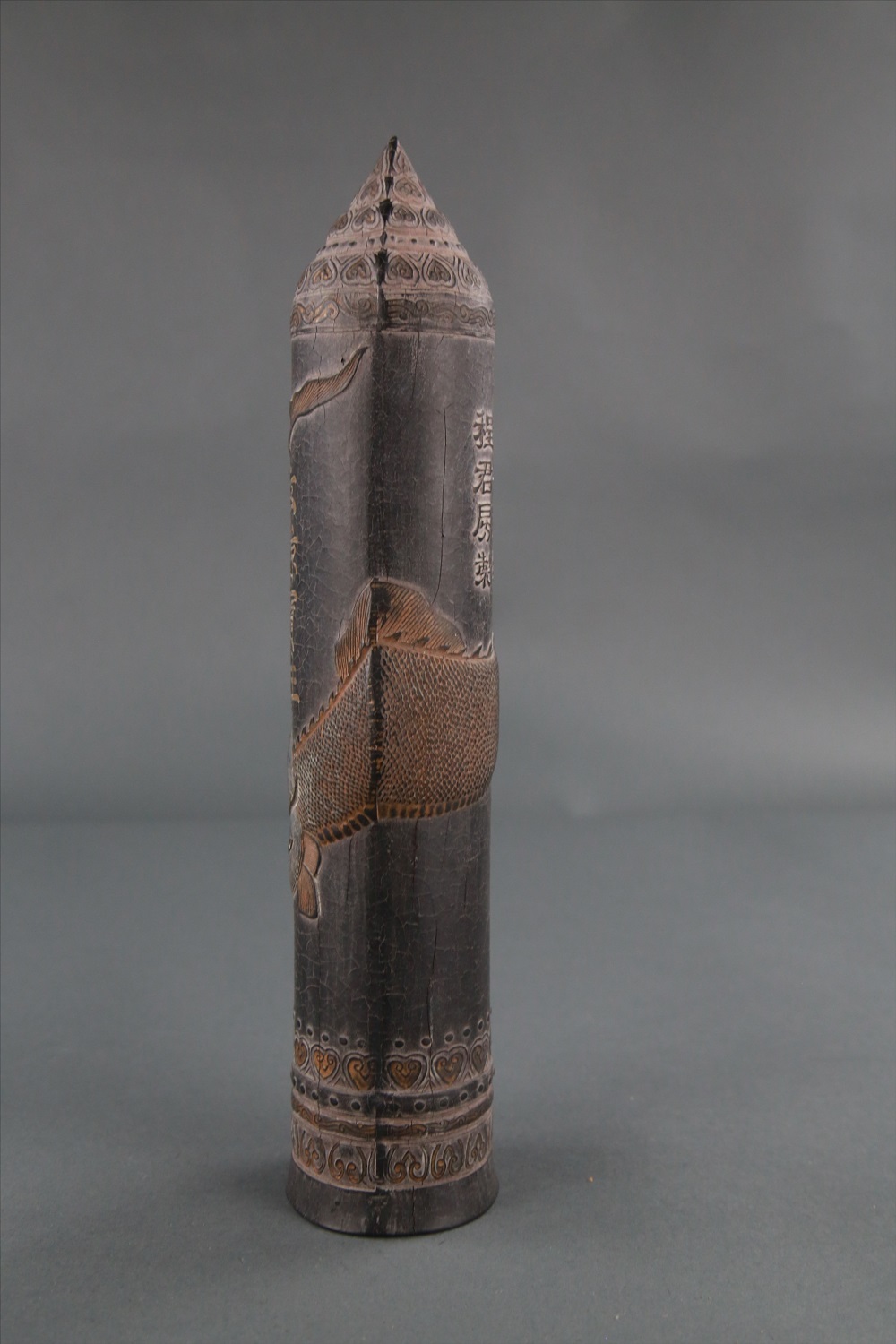 古歙岩镇程君房制笔形墨,藏品总登记号:2010-36(23),年代,不详,质地:其他有机质,尺寸:直径7cm,高34cm,保存状态:状态稳定,不需修复