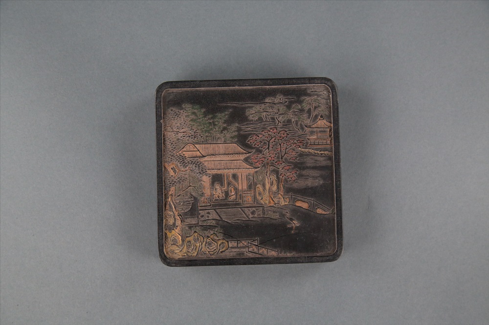 清乾隆"唤卿李子谓多事"人物花卉方形墨,藏品总登记号:2010-36(28),年代:清,质地:其他有机质,尺寸:长15cm,宽15cm,高2.5cm,保存状态:状态稳定,不需修复