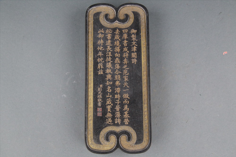 如意形山水御制文津阁诗墨,藏品总登记号:2010-36(29),年代:不详,质地:其他有机质,尺寸:长9m,宽21cm,高2cm,保存状态:状态稳定,不需修复
