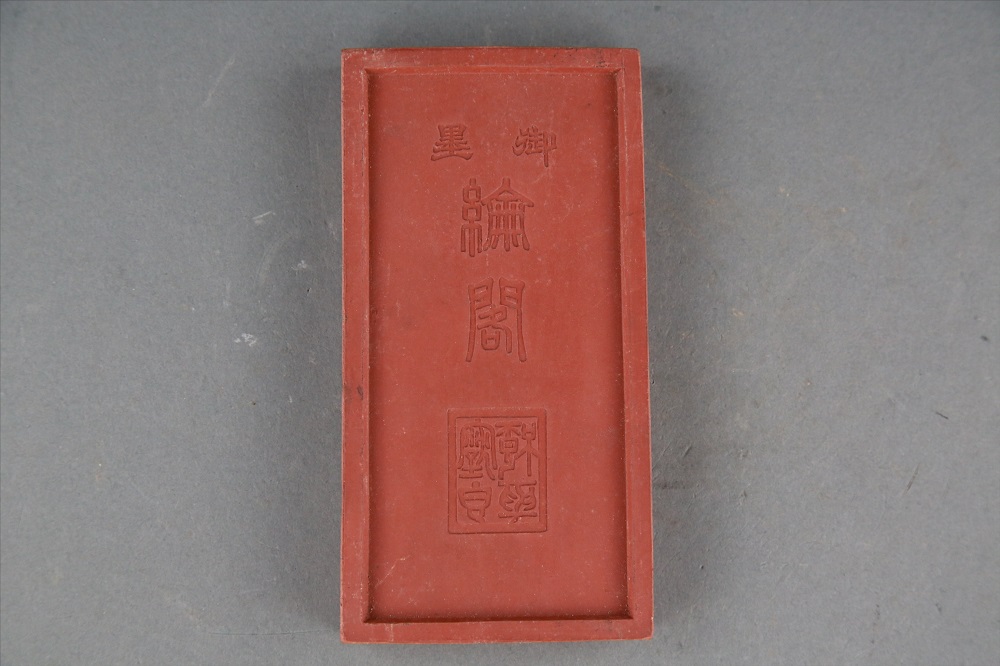 长方形山水红色伦阁御墨,藏品总登记号:2010-36(32),年代:不详,质地:其他有机质,尺寸:长8cm,宽15.5cm,高1.5cm,保存状态:状态稳定,不需修复
