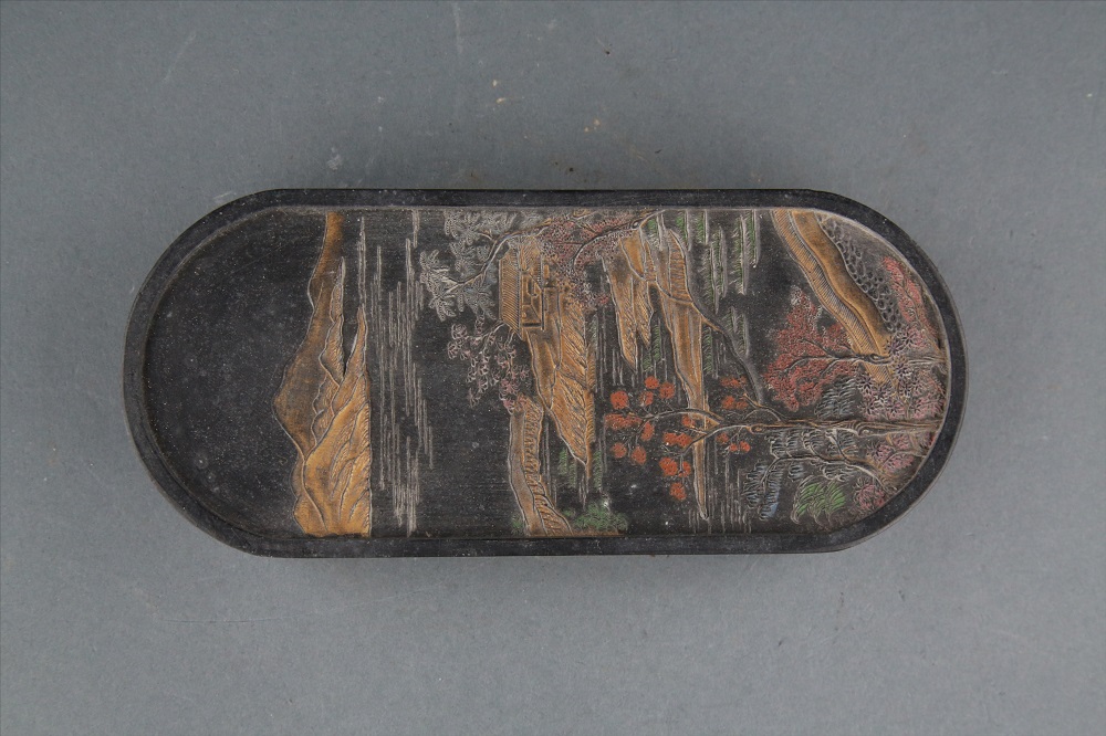 椭圆形御制文源阁诗墨,藏品总登记号:2010-36(35),年代:不详,质地:其他有机质,尺寸:长9cm,宽21cm,高2cm,保存状态:状态稳定,不需修复